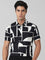 Black opaque casual shirtSpread collarButton placketShort sleevesCurved hemline
