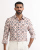 Elevate your style with this uniquely printed shirt featuring a spread collar, full sleeves with buttoned cuffs, a front button placket, and a curved hemline. It is adorned with vibrant patterns, effortlessly blending fashion and comfort, making a bold statement for any occasion.