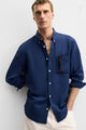 Men Solid Blue Regular Fit Shirt Style Note A solid hoodie that offers versatile styling, this cotton tint shirt is created with a double button placket and two pockets to keep your hands dry. Easily stack your jeans or printed...