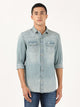 Relaxed fit shirt made of a linen and cotton blend. Button-down collar. Long sleeves with buttoned cuffs. Chest patch pocket. Button-up front.